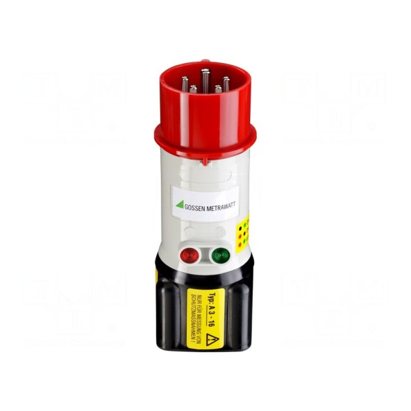 Adapter trójfazowy GOSSEN METRAWATT A3-16 służy do przeprowadzania pomiarów w instalacjach elektrycznych przy wykorzystaniu złącza CEE 16A. Urządzenie umożliwia bezpieczne podłączenie przyrządów pomiarowych wyposażonych w gniazda 4mm.