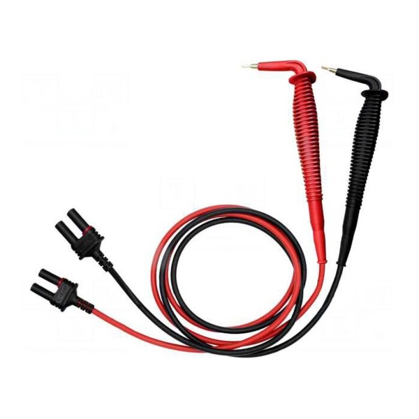 Przewody pomiarowe przeznaczone są do realizacji precyzyjnych pomiarów rezystancji metodą czteroprzewodową. Zestaw składa się z dwóch przewodów w kolorach czarnym oraz czerwonym, umożliwiając poprawne połączenie w układach pomiarowych.