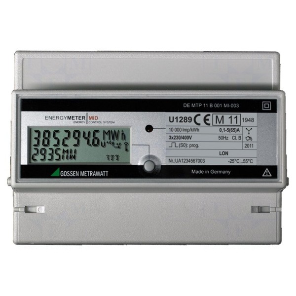 Cyfrowy licznik energii elektrycznej GOSSEN METRAWATT U1289-V011 przeznaczony jest do bezpośredniego pomiaru energii czynnej w sieciach 3-fazowych 4-przewodowych. Urządzenie pracuje przy napięciu znamionowym 0,23kV oraz 0,4kV i obsługuje częstotliwość pracy w zakresie 45–65Hz. Maksymalny prąd obciążenia wynosi 65A, a pomiar realizowany jest z dokładnością na poziomie 1% przy zachowaniu klasy dokładności B.