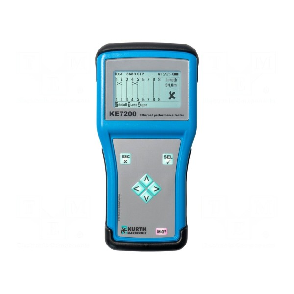 Tester okablowania LAN GOSSEN METRAWATT KE7200 to urządzenie wyposażone w wyświetlacz LCD, przeznaczone do diagnostyki przewodów typu BNC, RJ11, RJ45 oraz typu F. Urządzenie pozwala na pomiar okablowania o maksymalnej długości 150 metrów oraz wykrywanie przerw, zwarć i miejsc uszkodzeń przewodu. Konstrukcja posiada klasę szczelności IP52 oraz wbudowane zabezpieczenie przeciwprzepięciowe OVP.