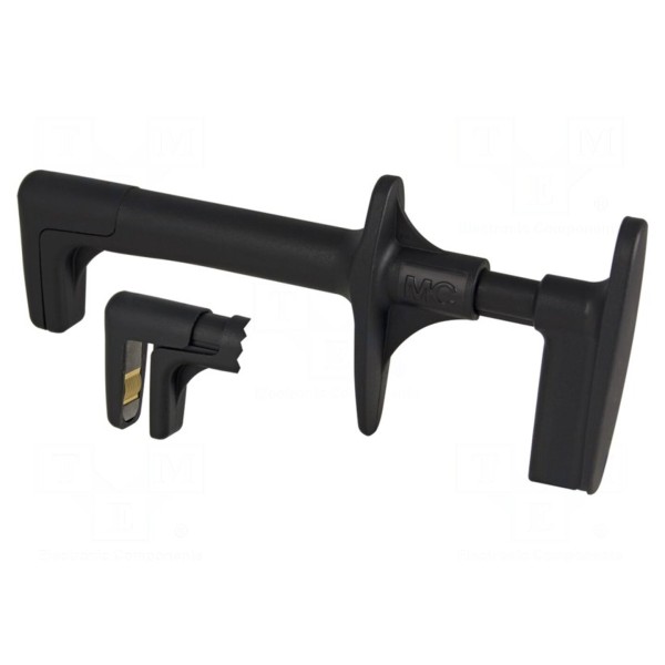 Zacisk przeznaczony jest do łączenia z szynami prądowymi w instalacjach elektrycznych. Komponent wyposażony jest w gniazdo o średnicy 4 mm oraz szczęki o rozwarciu do 12 mm, co umożliwia pewne mocowanie na elementach przewodzących.