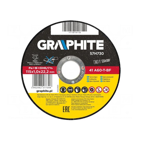 Tarcza tnąca o średnicy 115 mm przeznaczona jest do pracy z metalem, stalą oraz stalą nierdzewną. Produkt charakteryzuje się grubością 1 mm, co umożliwia sprawne przecinanie materiałów. Montaż odbywa się za pomocą otworu o średnicy 22,2 mm.