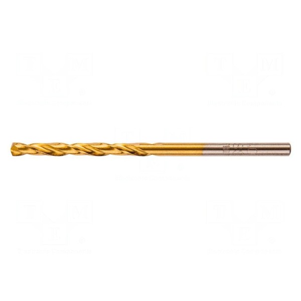 Wiertło do metalu o średnicy 3 mm wykonane jest ze stali szybkotnącej HSS. Zastosowanie azotku tytanu jako materiału pokrycia zwiększa wytrzymałość elementu podczas eksploatacji.
