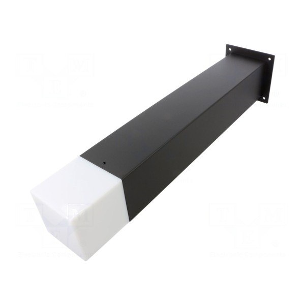 Oprawa ogrodowa przeznaczona jest do montażu zewnętrznego, zapewniając ochronę na poziomie IP44. Konstrukcja urządzenia składa się z korpusu wykonanego z aluminium w kolorze grafitowym oraz klosza z mlecznego poliwęglanu.