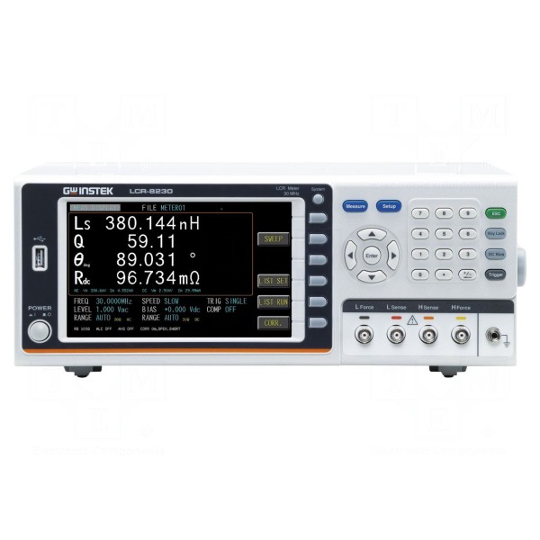 Mostek RLC GW INSTEK LCR-8230 przeznaczony jest do analizy parametrów komponentów elektronicznych w szerokim zakresie częstotliwości od 10Hz do 30MHz. Urządzenie umożliwia precyzyjny pomiar impedancji, admitancji, indukcyjności, pojemności, rezystancji, reaktancji, a także przewodnictwa. Funkcjonalność urządzenia obejmuje również wyznaczanie kąta fazowego θ oraz współczynników jakości i rozproszenia.