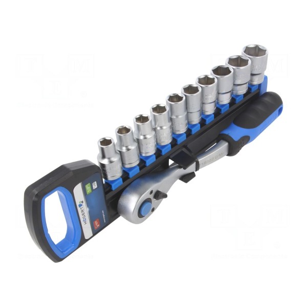 W zestawie: grzechotka 1/2", nasadki 6-kątne 1/2". Zastosowane komponenty pozwalają na obsługę połączeń śrubowych z łbami sześciokątnymi w serwisie i pracach warsztatowych.