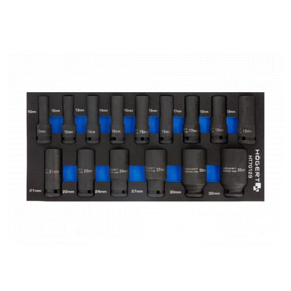 Zestaw kluczy nasadowych udarowych o rozmiarze gniazda uchwytu 1/2" przeznaczony jest do pracy z elektronarzędziami. Komplet zawiera 15 elementów dostosowanych do obsługi połączeń śrubowych.