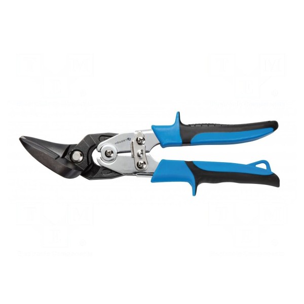 Nożyce przeznaczone są do cięcia blachy stalowej, miedzianej oraz aluminiowej. Narzędzie charakteryzuje się długością 250 mm oraz wersją wykonania umożliwiającą cięcie w prawą stronę.