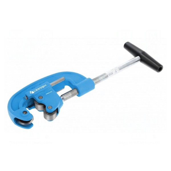 Konstrukcja urządzenia umożliwia stabilne prowadzenie podczas pracy, co pozwala na zachowanie prostopadłej płaszczyzny cięcia. Produkt znajduje zastosowanie w pracach instalacyjnych związanych z obróbką rur miedzianych, aluminiowych i stalowych.