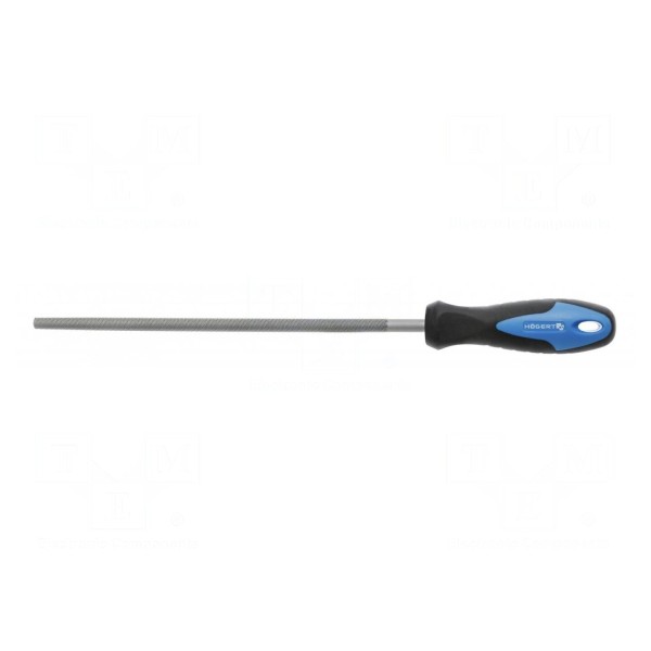 Narzędzie typu pilnik o przekroju okrągłym przeznaczone jest do obróbki materiałów metalowych. Długość części roboczej narzędzia wynosi 200 mm, co pozwala na precyzyjne kształtowanie otworów oraz powierzchni o obłym profilu.