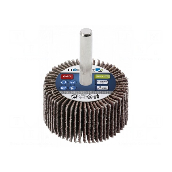 Ściernica listkowa ⌀40x20mm, trzpień 6mm, ziarnistość 40