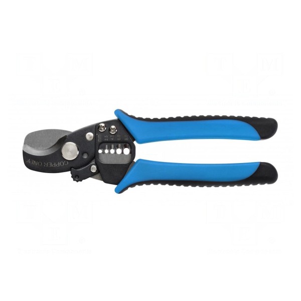 Szczypce przeznaczone do prac elektroinstalacyjnych umożliwiają efektywne cięcie przewodów miedzianych o średnicy do 12 mm oraz ściąganie izolacji z przewodów o przekroju od 2,5 do 8 mm². Narzędzie charakteryzuje się owalnym kształtem główki, co ułatwia prowadzenie prac w ograniczonych przestrzeniach roboczych.