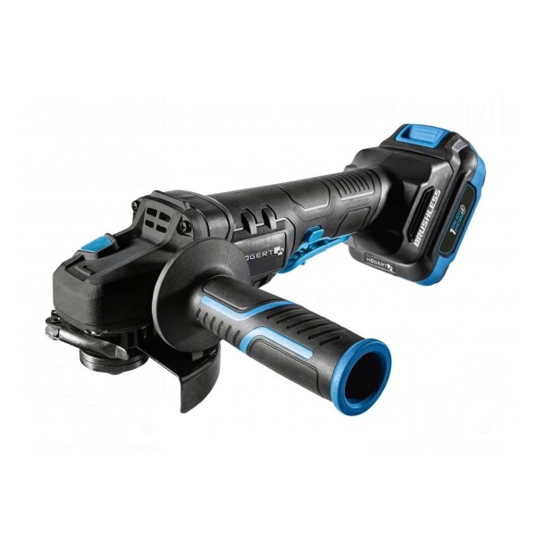 Szlifierka kątowa wyposażona jest w silnik bezszczotkowy, zasilany napięciem 18V DC. Urządzenie osiąga prędkość obrotową na poziomie 8000obr./min i przeznaczone jest do obsługi tarcz o średnicy 125mm. Narzędzie dedykowane jest do prac warsztatowych.