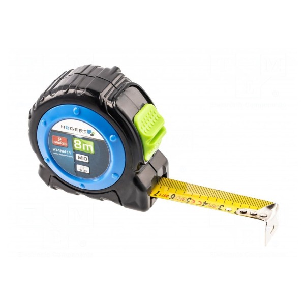 Taśma pomiarowa o długości 8 metrów i szerokości 25 milimetrów to narzędzie przeznaczone do wykonywania precyzyjnych pomiarów długości. Produkt posiada klasę dokładności II, co zapewnia odpowiednie parametry metrologiczne podczas pracy.