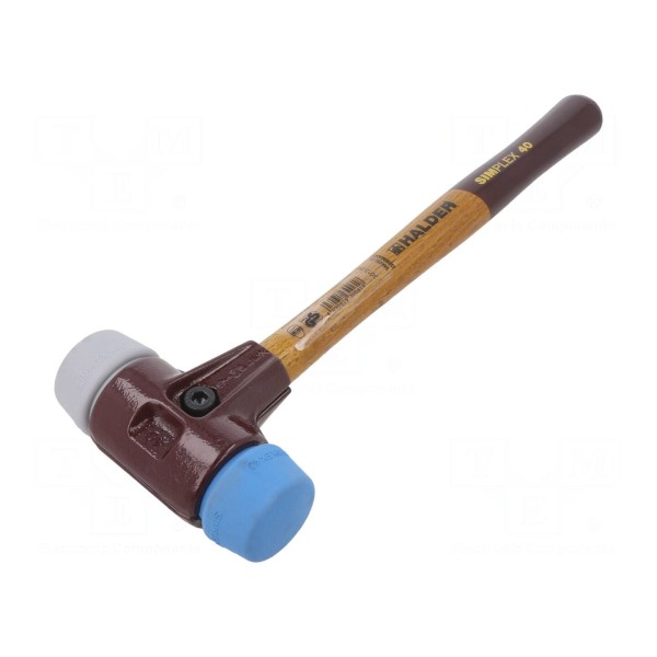 Młotek montażowy z serii SIMPLEX wyposażony jest w okrągłą końcówkę wykonaną z elastomeru. Narzędzie posiada obuch o szerokości 115 mm, co pozwala na stabilne prowadzenie uderzeń podczas prac montażowych.