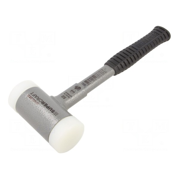 Młotek bezodrzutowy o średnicy obucha 50 mm wyposażony w okrągłą końcówkę. Narzędzie posiada masę obucha wynoszącą 1,15 kg, co zapewnia odpowiednią siłę uderzenia podczas prac montażowych i warsztatowych.