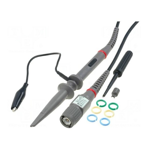 Urządzenie obsługuje maksymalne napięcie wejściowe do 600V i posiada zakres kompensacji mieszczący się w przedziale od 20pF do 40pF. Całość przewodu o długości 1,2m wyposażona jest w wtyk BNC oraz chwytak haczykowy, co umożliwia stabilne podłączenie do badanego obwodu.