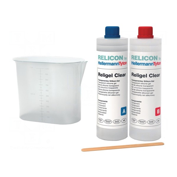 Zalewa silikonowa RELIGEL-CLEAR to dwuskładnikowy preparat na bazie silikonu, przeznaczony do uszczelniania i hermetyzacji. Produkt charakteryzuje się przezroczystością oraz wytrzymałością na przebicie na poziomie minimum 25kV/mm. Dzięki bezhalogenkowej formule, zalewa może być stosowana w szerokim zakresie temperatur roboczych od -60°C do 200°C.