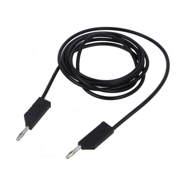 Elementy stykowe wykonano z mosiądzu i poddano procesowi niklowania w celu ochrony przed utlenianiem. Przewód wyposażony jest obustronnie we wtyki bananowe zintegrowane z gniazdem osiowym 4mm, co umożliwia wygodne łączenie szeregowe akcesoriów w układach pomiarowych. Całość wykonana jest w kolorze czarnym.