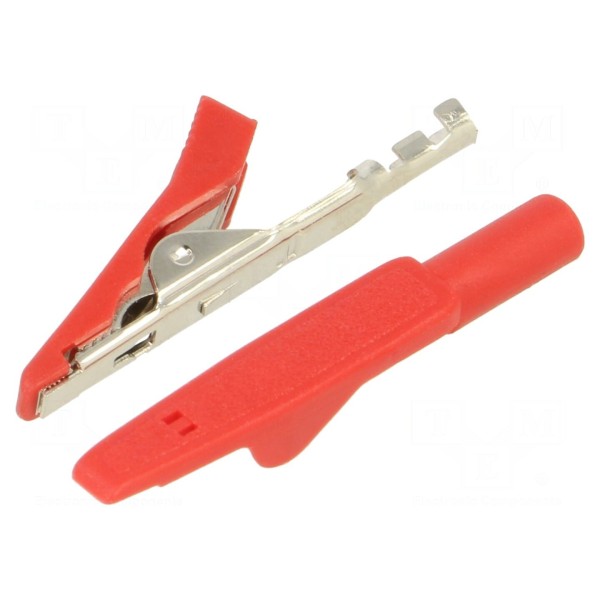 Zacisk krokodylkowy 8A, zakres chwytania 4mm, kolor czerwony
