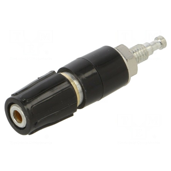 Element przeznaczony jest do montażu na panelu poprzez lutowanie oraz przykręcanie. Całkowita długość złącza wynosi 35mm, a jego obudowa została wykończona w kolorze czarnym.