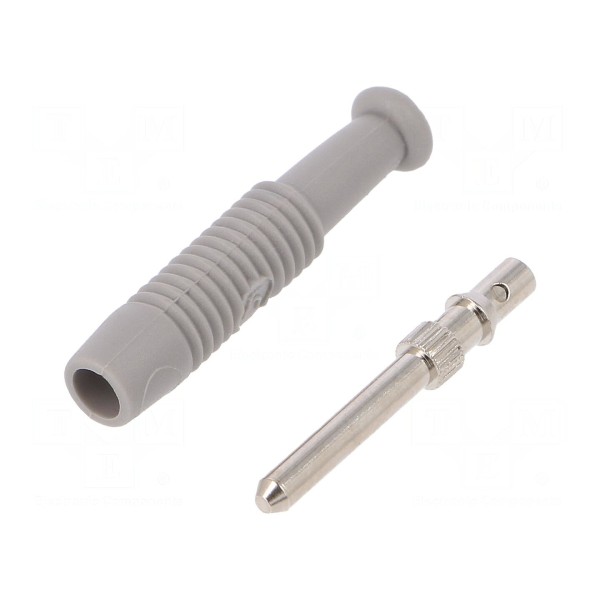 Złącze bananowe 2mm, wtyk 6A, 60V DC, szary