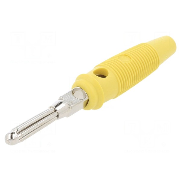 Konstrukcja wtyku jest nieizolowana, a maksymalna rezystancja styku wynosi 3mΩ. Komponent został przystosowany do pracy w zakresie temperatur od -25°C do 70°C. Produkt występuje w kolorze żółtym.