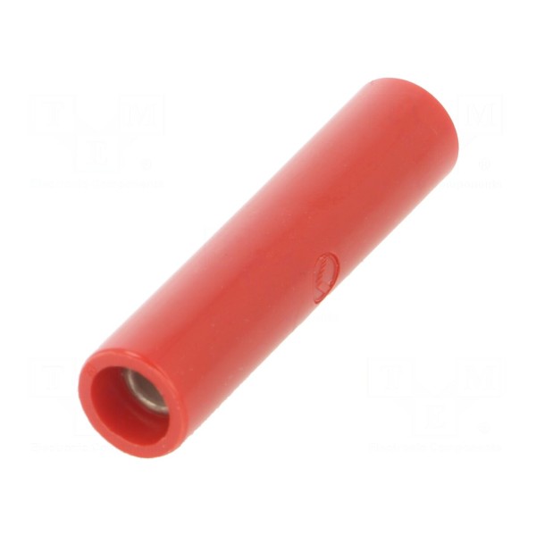Element posiada styki wykonane z mosiądzu z cynowaną powłoką, co zapewnia odpowiednią przewodność. Złącze przystosowane jest do montażu wciskanego, a jego całkowita długość wynosi 44mm. Produkt pracuje w zakresie temperatur od -25°C do 70°C i występuje w kolorze czerwonym.