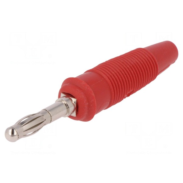 Wtyk bananowy 4mm, 32A, 60V DC, kolor czerwony