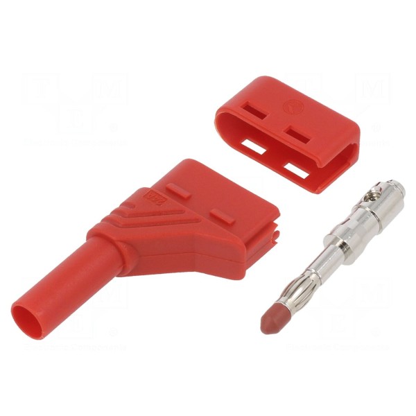 Złącze bananowe 4mm wtyk, 24A, 1kV DC, kolor czerwony