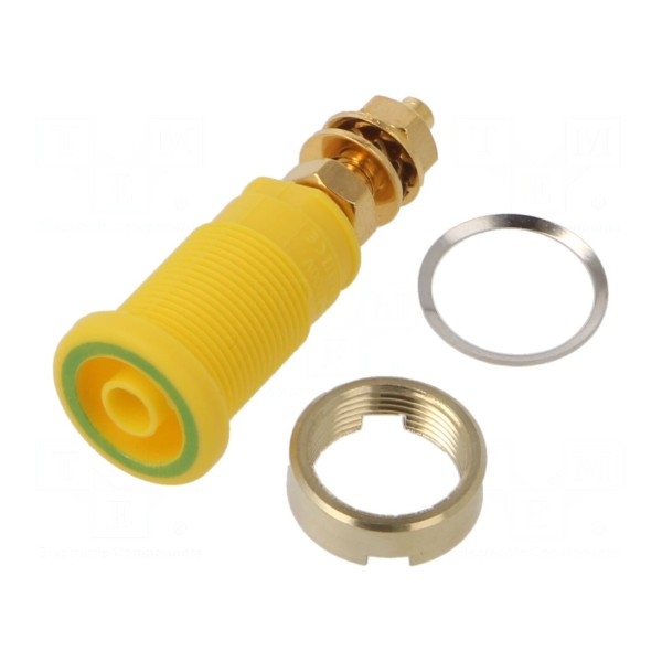Gniazdo bananowe 4mm, 1kV DC, 32A, kolor żółto-zielony
