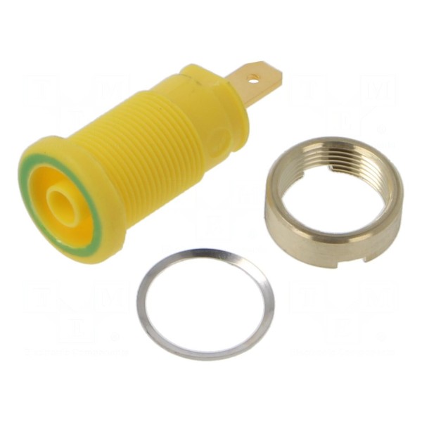 Gniazdo bananowe 4mm, 1kV DC, 25A, żółto-zielone