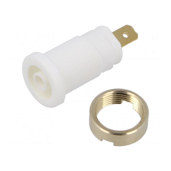 Styki wykonane są z mosiądzu i posiadają złoconą powłokę, co wpływa na parametry połączenia. Izolacja elementu została wyprodukowana z poliamidu, a montaż złącza odbywa się poprzez przykręcanie. Produkt jest zgodny z normami CAT III 1000V oraz EN 61010.
