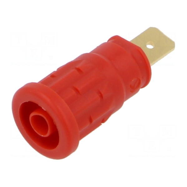 Złącze laboratoryjne typu gniazdo bananowe 4mm przeznaczone jest do montażu na panelu metodą wciskaną. Element charakteryzuje się napięciem znamionowym 1kV oraz prądem znamionowym 32A, spełniając przy tym wymogi bezpieczeństwa normy EN 61010 w kategorii CAT III 1000V.