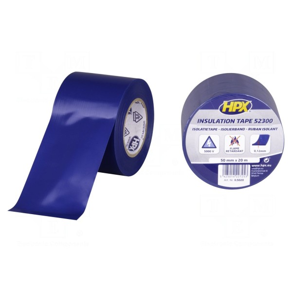 Taśma elektroizolacyjna z folii PVC, 50mm x 20m, niebieska