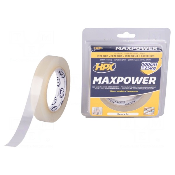 Taśma mocująca HPX MDSMP-1905TR to dwustronny produkt wykonany na nośniku z pianki akrylowej, przeznaczony do różnorodnych prac montażowych. Charakteryzuje się szerokością 19 mm, długością 5 m oraz grubością 1 mm. Wykorzystany w taśmie klej akrylowy zapewnia siłę klejenia na poziomie 1,16 N/mm.