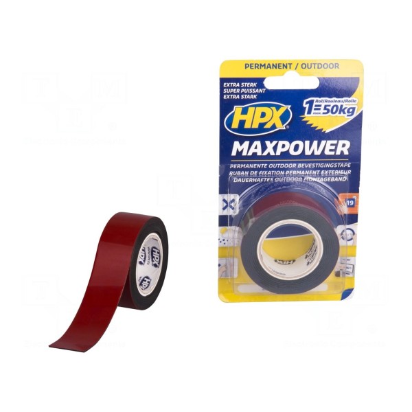 Dwustronna taśma mocująca o szerokości 25mm i długości 1,5m wykonana jest na nośniku z pianki akrylowej. Produkt wykorzystuje klej akrylowy, który zapewnia siłę klejenia na poziomie 2,12N/mm. Całkowita grubość taśmy wynosi 1,1mm.