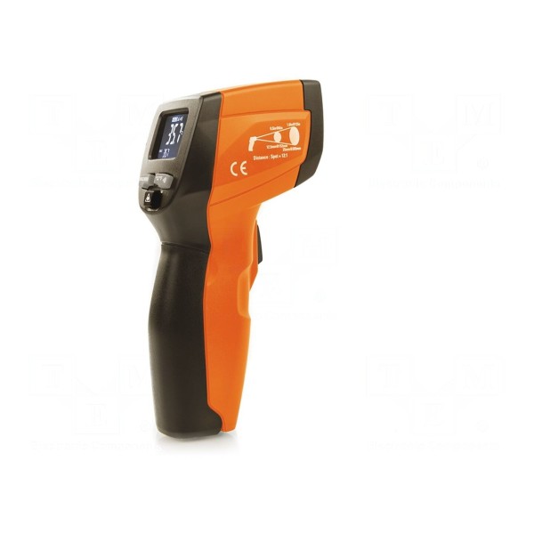 Urządzenie służy do bezdotykowego pomiaru temperatury w zakresie od -50°C do 380°C. Wykorzystuje technikę podczerwieni przy stałej wartości emisyjności 0,95 oraz rozdzielczości optycznej 12:1. Wyniki pomiarów prezentowane są z rozdzielczością 0,1°C w jednostkach stopni Celsjusza lub Fahrenheita, przy dokładności podstawowej wynoszącej ±(1% + 1°C).