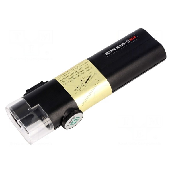 Mikroskop ręczny o powiększeniu x30, zasilany bateryjnie