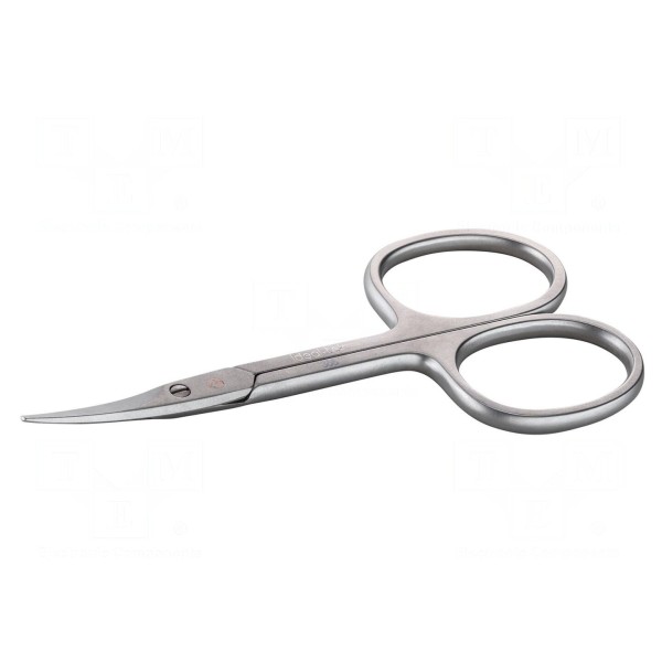 Nożyce wykonane są ze stali nierdzewnej, co zapewnia odpowiednią trwałość materiału w typowych warunkach eksploatacji. Narzędzie charakteryzuje się całkowitą długością wynoszącą 90mm.