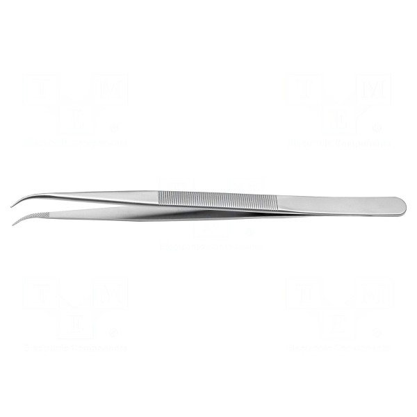 Pęseta zagięta 150mm, końcówki żłobkowane