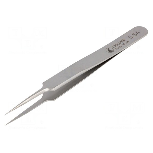 Pęseta 5.SA to narzędzie o prostej konstrukcji i długości 110mm, przeznaczone do wykonywania prac precyzyjnych. Model ten posiada ostre, zwężone końcówki, co umożliwia chwytanie drobnych elementów w warunkach wymagających wysokiej dokładności.