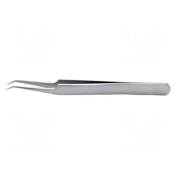 Pęseta IDEAL-TEK 51S.SA.0 to narzędzie o długości 115 mm, przeznaczone do prac wymagających dużej precyzji. Charakteryzuje się zagiętą konstrukcją oraz ostrym kształtem końcówki ostrza, co umożliwia operowanie na niewielkich elementach.