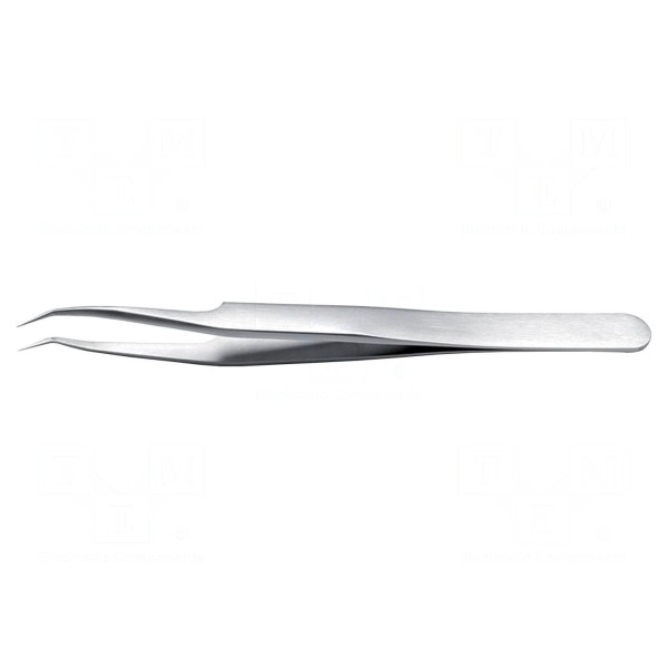 Pęseta IDEAL-TEK 5C.SA.0 to narzędzie ręczne o długości 115 mm, przeznaczone do prac precyzyjnych. Model ten charakteryzuje się zagiętą konstrukcją oraz ostrym kształtem końcówki ostrza.