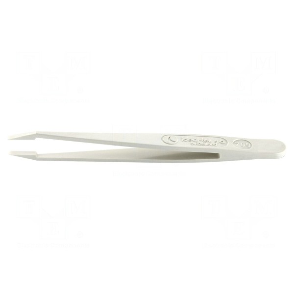 Konstrukcja wykonana została z materiału Delrin, co zapewnia odporność mechaniczną oraz właściwości antystatyczne (ESD). Całkowita długość pęsety wynosi 115mm.