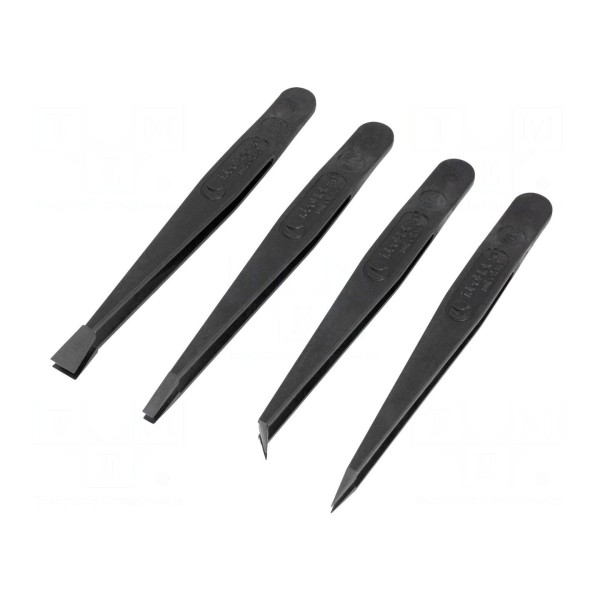 Zestaw 4 pęset ESD, materiał poliamid z przewodzącym włóknem