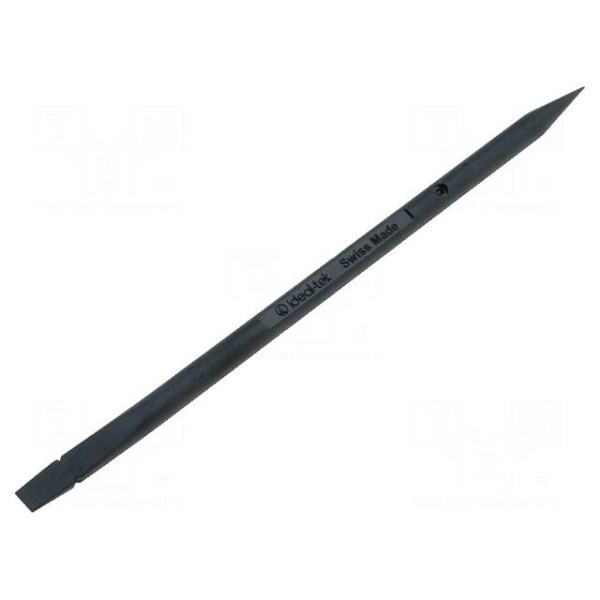 Skrobak w wersji ESD wykonany jest z tworzywa sztucznego, co umożliwia pracę w środowiskach wymagających ochrony przed wyładowaniami elektrostatycznymi. Narzędzie o długości 150mm zostało zaprojektowane z dwoma kształtami końcówek: ostrą oraz łopatką, co pozwala na precyzyjne operowanie wewnątrz układów elektronicznych.
