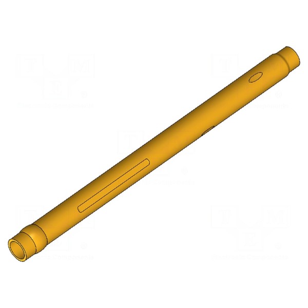Całkowita długość gniazda wynosi 19,5mm, natomiast wysokość kołnierza ustalono na 1,5mm. Konstrukcja dopasowana jest do standardowych zastosowań w systemach igieł testowych.
