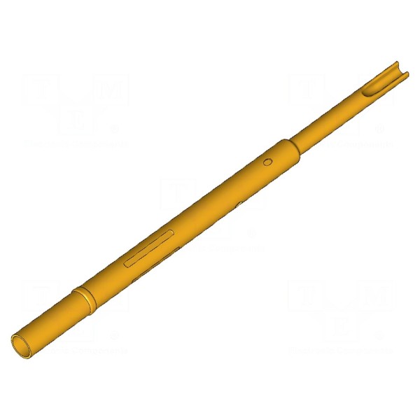 Gniazdo igły testowej INGUN KS-100 30 to element przeznaczony do montażu metodą lutowania. Konstrukcja charakteryzuje się pokryciem styku warstwą złota, co wpływa na parametry połączenia.