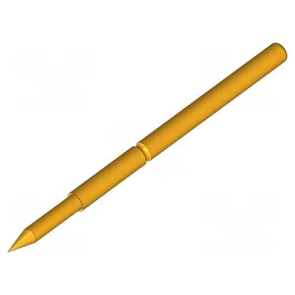 Igła testowa marki INGUN została zaprojektowana do pracy w układach wymagających przepływu prądu znamionowego do 5A. Element charakteryzuje się kształtem końcówki typu ostry stożek o średnicy 1,07mm, co umożliwia precyzyjny styk w punktach pomiarowych. Konstrukcja wykonana ze stali z pokryciem złoconym zapewnia trwałość użytkową, a rezystancja styku na poziomie maksymalnie 20mΩ gwarantuje odpowiednie parametry przewodzenia.